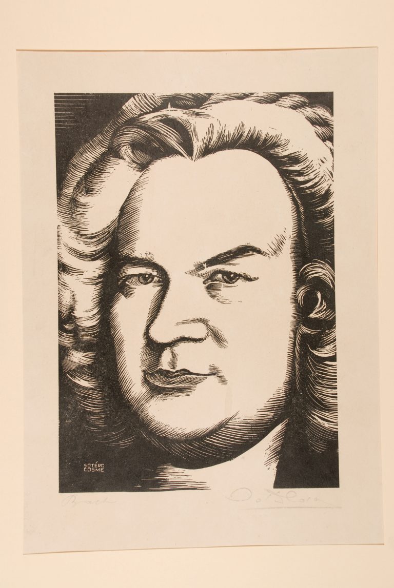 Busto de Villa-Lobos em pedra reconstituída (cimento, pó de granito e pigmento), em tom amarelo rosado. Rosto de frente, cabelos para trás, sobrancelhas e nariz proeminentes. Cabeça apoiada em base quadrangular, esculpida junto à cabeça e pescoço. Na lateral direita da base, ao centro, assinatura do autor: Luiz Perlotti, 1937