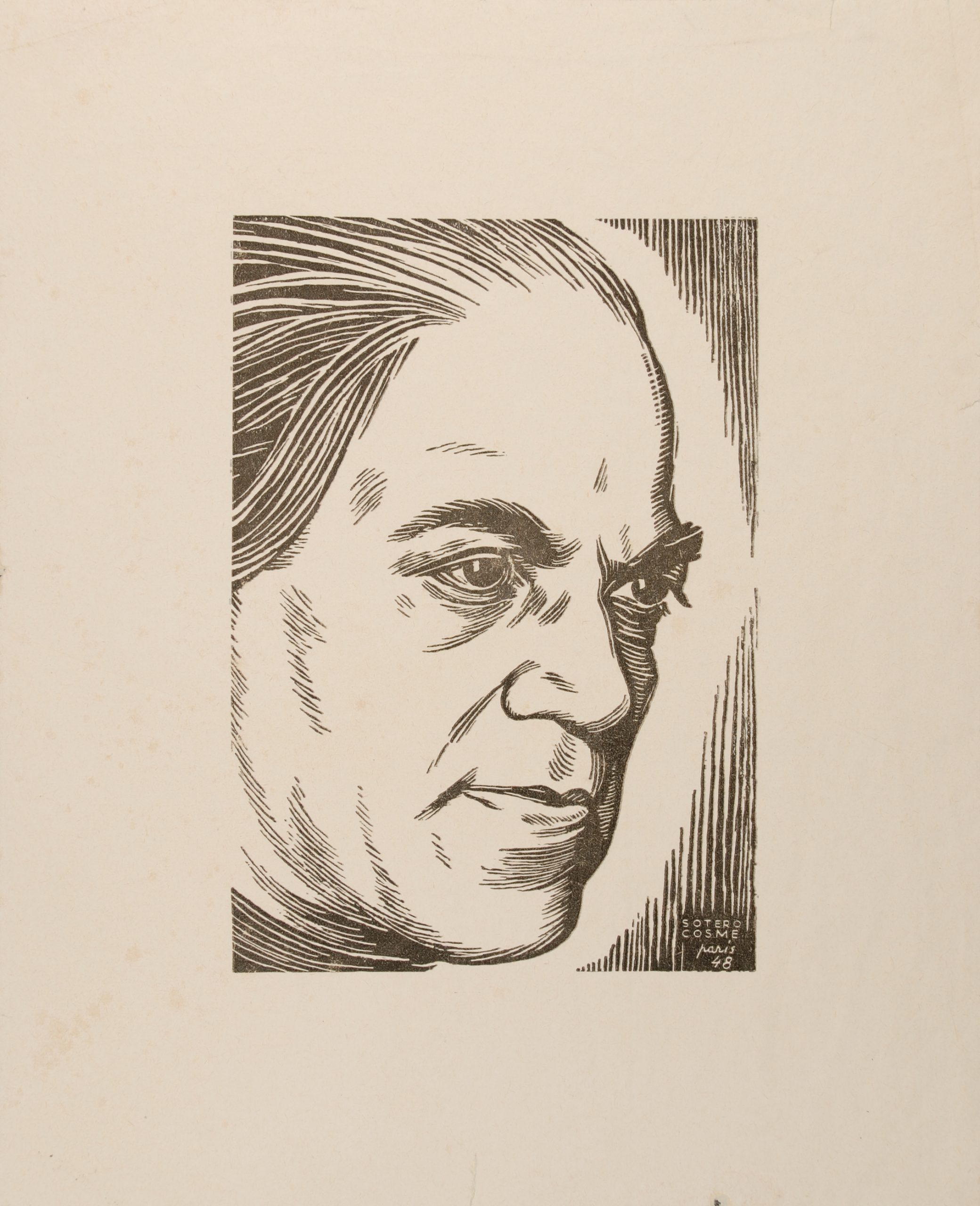27 de novembro de 2023Sotero cosme, Villa-lobos 2008.06C.003 Baixar Número de registro2008.06C.003DenominaçãoRetrato (estampa)Resumo descritivoRosto de Villa-Lobos nas cores preta e branca, de perfil à direita (3/4) sobrancelhas grossas, cabelos para trás. A assinatura do autor está gravada no canto inferior direito: "Sotero Cosme - Paris 1948"Classificação6.3 ** Objetos associados à gravuraClassificação MVL06C - Artes plásticas e acessórios - gravuraAutoriaSotero CosmeMaterialPapelColeçãoArtes visuaisModo de entradaDoaçãoData de Produção1948Estado de conservaçãoRegularCondições de reproduçãoRestritoSituaçãoLocalizadoDimensão tipo de medidasAltura x LarguraDimensões21 x 17 cmTipo de itemParte de um conjuntoTipo de conjuntoEstampasItens do Conjunto2008.06C.003 | 2008.06C.004 Item anteriorHeitor Villa-Lobos Próximo itemBach