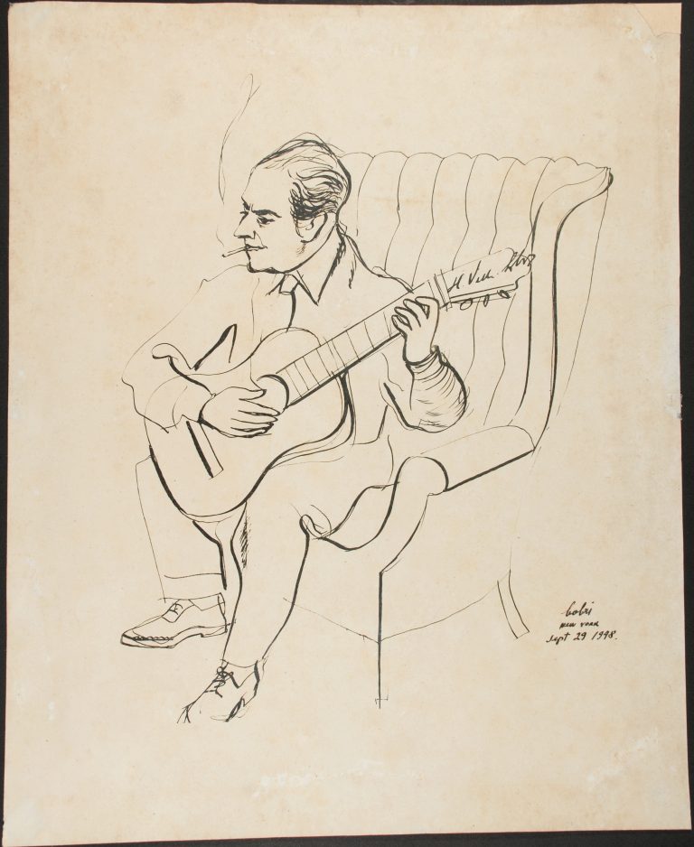 O palhaço. Pastel em papel de seda. Atribuído a Di Cavalcanti. Inscrição TVE (TUE?) na extremidade inferior direita do verso
