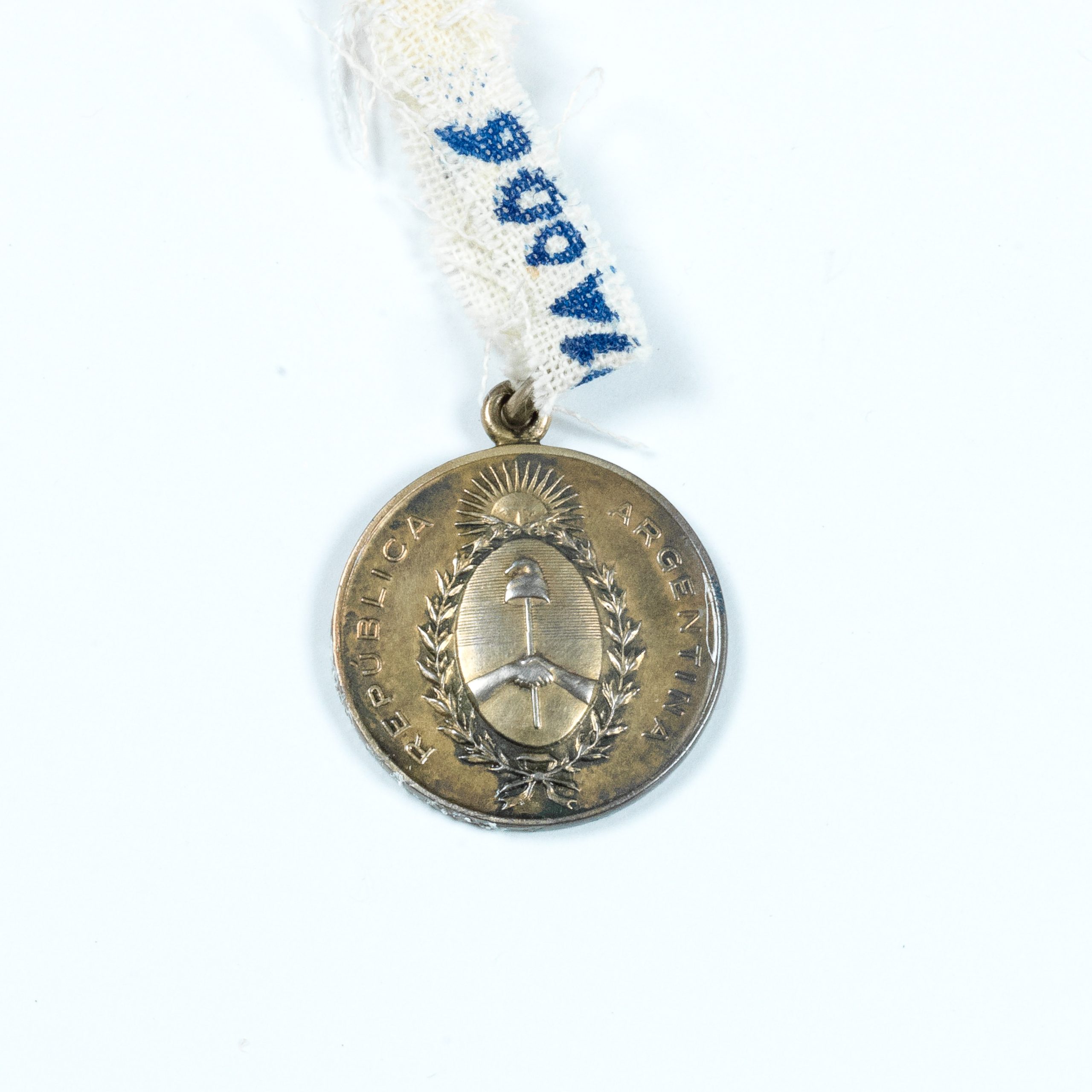 Medalha circular em metal dourado. Anverso: Escudo da Argentina. Orla com a epigrafia: República Argentina. Reverso: Campo ocupado pela epigrafia: Academia Nacional de Belas Artes - Heitor Villa-Lobos - Academico - Correspondente