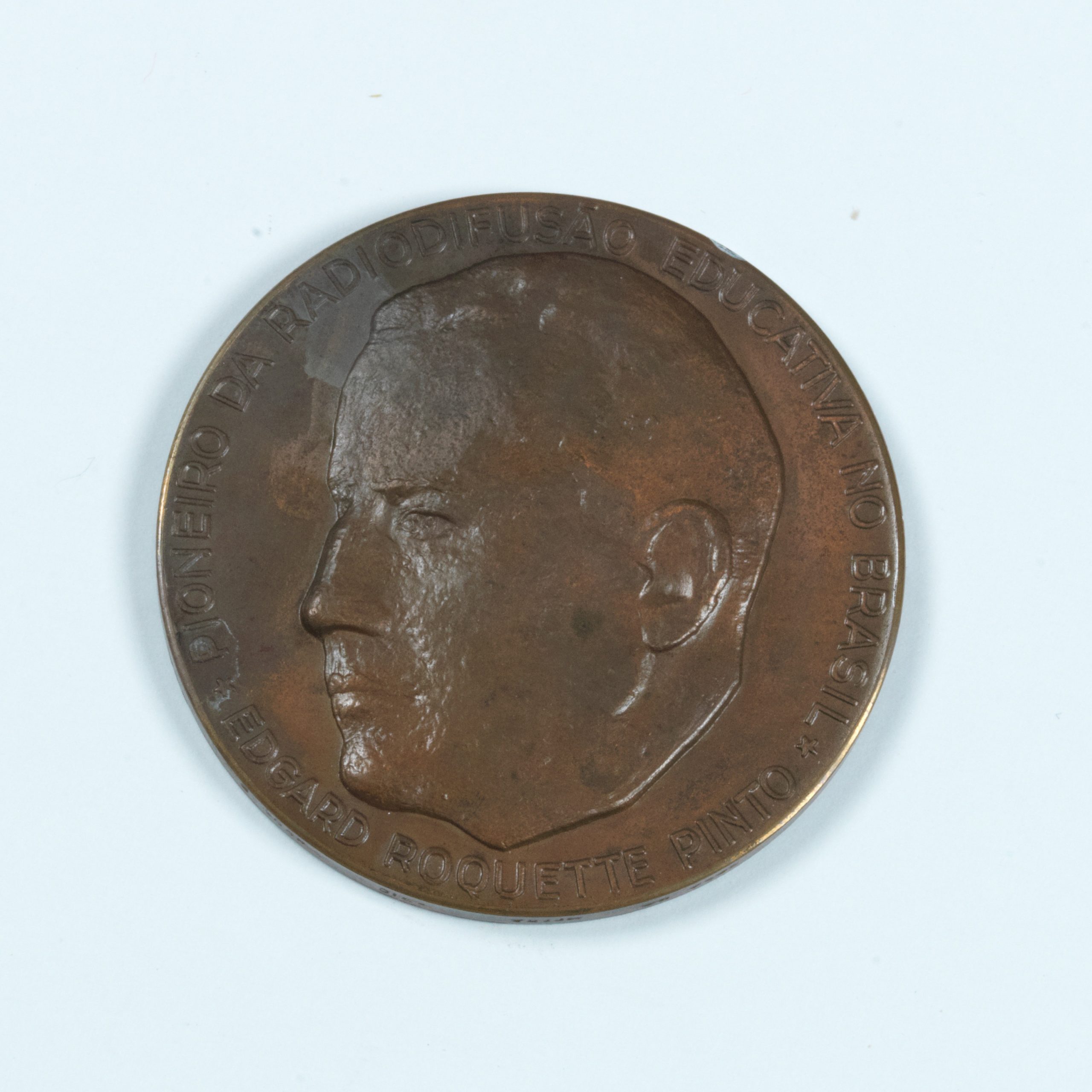 Medalha Roquette Pinto entregue por ocasião do Jubileu de Prata da Rádio do Min. Da Educação e Cultura (1961). Medalha em bronze, formato circular. Anverso: Efígie de Roquette Pinto de perfil e na orla a seguinte inscrição: " Pioneiro da radiodifusão educativa no Brasil" Reverso: Pergaminho em relevo com a se guinte inscrição: "Pela cultura / dos que vivem / em nossa terra / pelo progresso / do Brasil" / Assinatura de Roquette Pinto. Na orla a sefuinte inscrição: "Rádio ministério da educação e cultura * 1961 - 1936 * Jubileu de Prata."