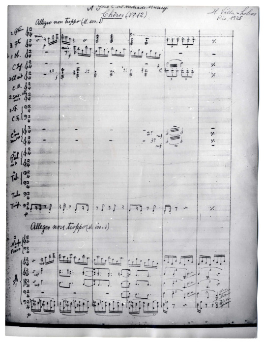 Cópia fotográfica de matriz fotostática de manuscrito de Heitor Villa-Lobos. Cópia fotográfica realizada a partir de matriz fotostática em negativo (na RT 1). Redução; embora o compositor tenha descrito a obra como redução para piano solo, trata-se de uma redução para 2 pianos (verificado através de análise musical). As páginas 2,3,5,8,9,10,27,31,33,34,45 e 46 estão duplicadas. A página 32 está triplicada. Ver também formulário de nº de registro 1990.21.0027.