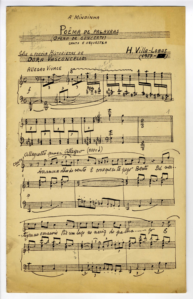 - cópia heliográfica de manuscrito de Heitor Villa-Lobos;